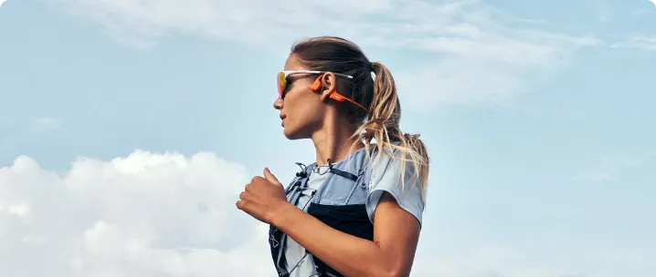 Los auriculares Open-Ear mantienen tus oídos frescos y libres de sudor.