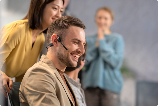 Con el diseño open-ear de los OpenComm2 UC, no perderás la conexión con tu entorno para que nunca te pierdas nada.
